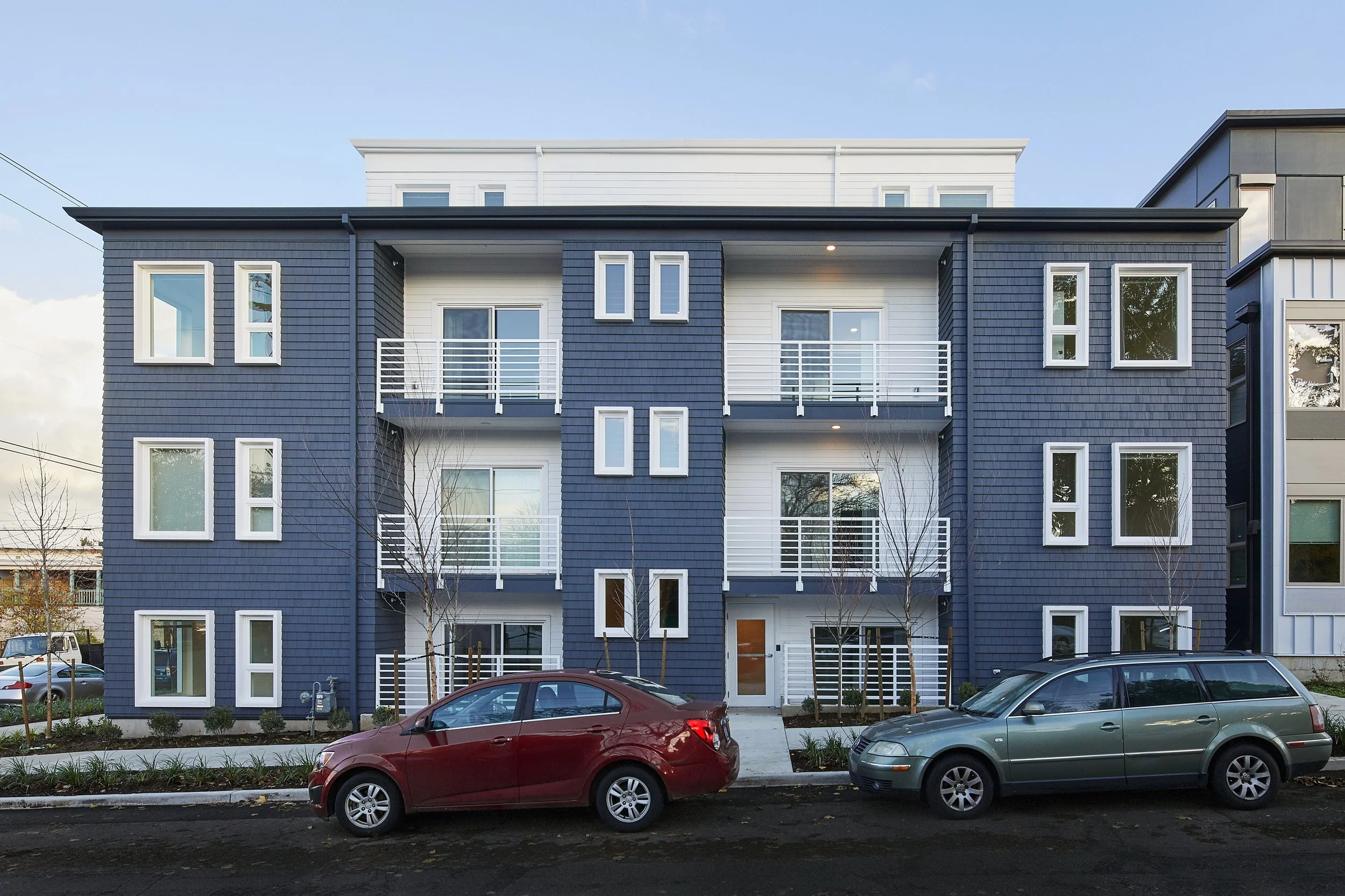 At 330 Dekum, the development team had two central goals. First, to create meaningfully affordable housing in a cost-effective way that could be replicated easily by other market rate developers, without relying upon the large federal or statewide subsidies that facilitate large scale, but expensive to develop, affordable housing projects. Second, and equally important, to provide well designed, comfortable apartments inside a modern and thoughtfully designed building that was responsive to the neighborhood context.