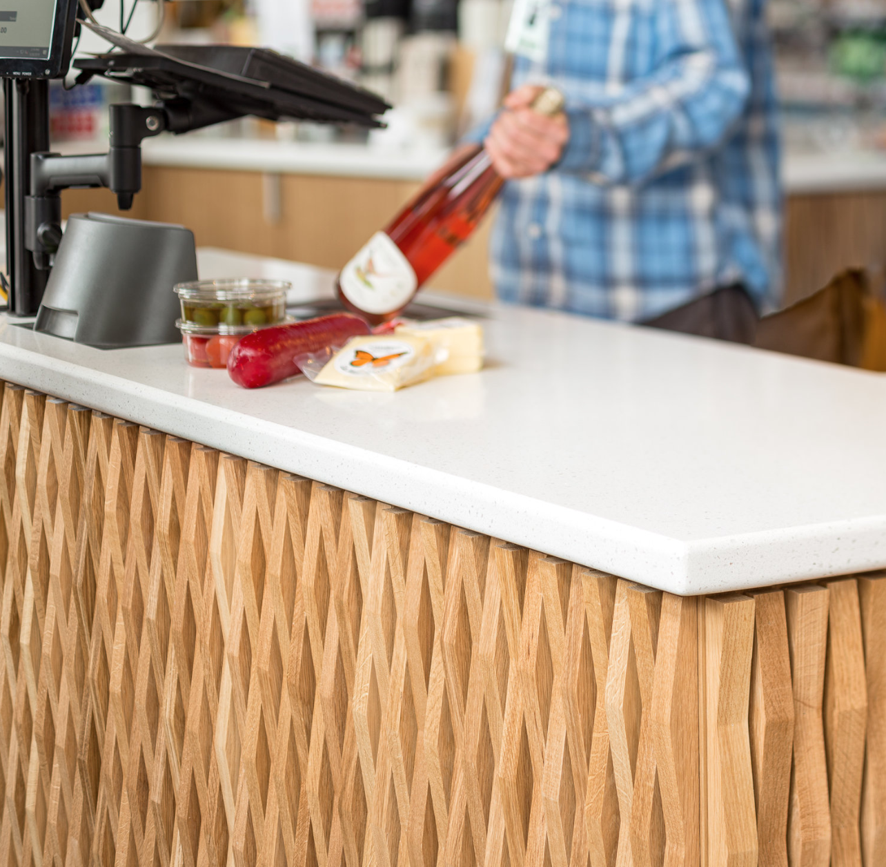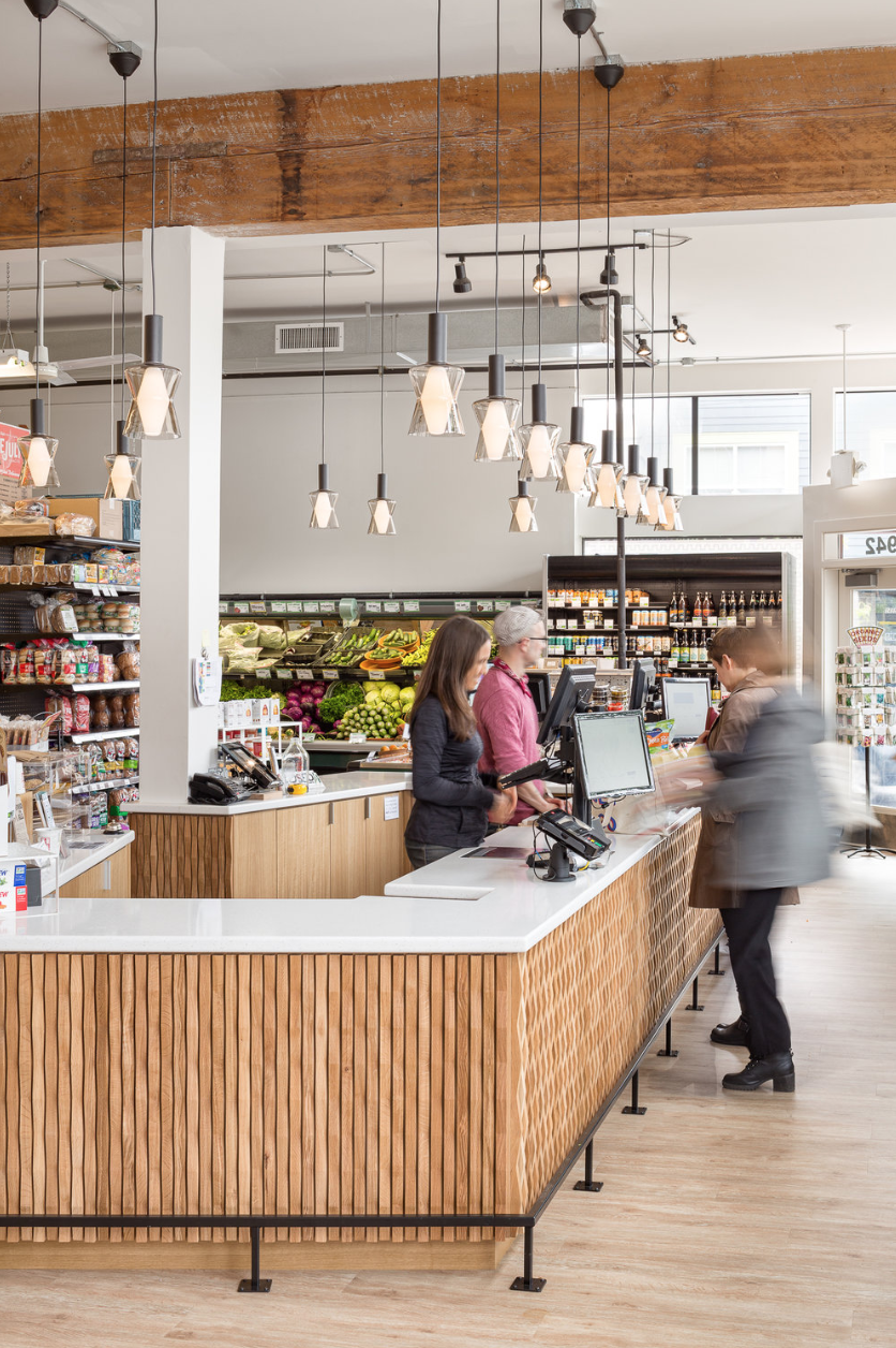 The revamped Albert Co-op is bright and open, complete with white oak, accents of steel, and large windows that let in abundant natural light. The final result is an improved aesthetic and shopping experience – for customers and employees alike.